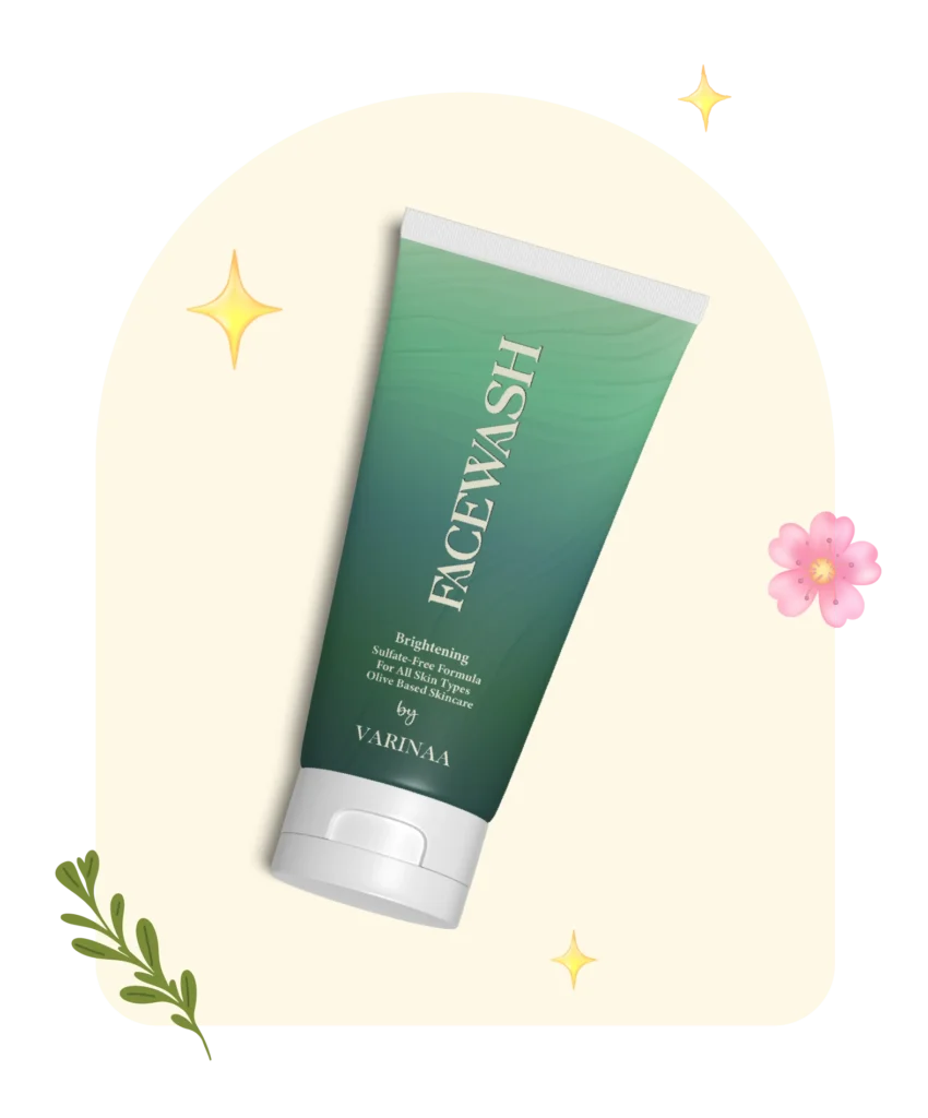 Varinaa Brightening Face Wash is a sulfate free, olive based formula designed to cleanse deeply without stripping your skin’s natural moisture barrier. It removes dirt, oil, pollution, and buildup while keeping your skin hydrated, balanced, & visibly brighter.
